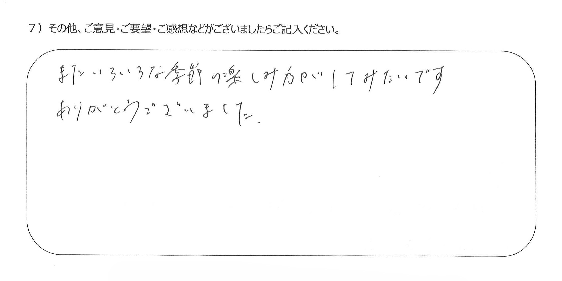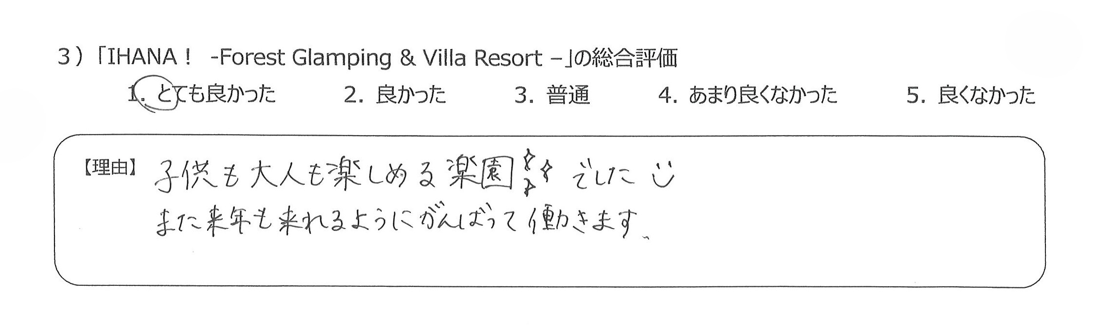 また来年も来れるようにがんばって働きます。4)急な浮輪のお願いにも快く対応下さり、ありがとうございました。