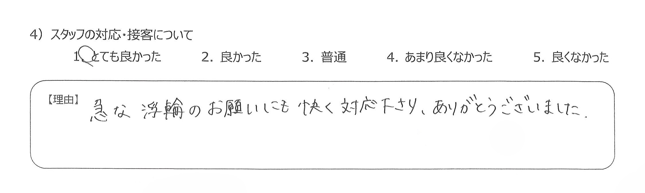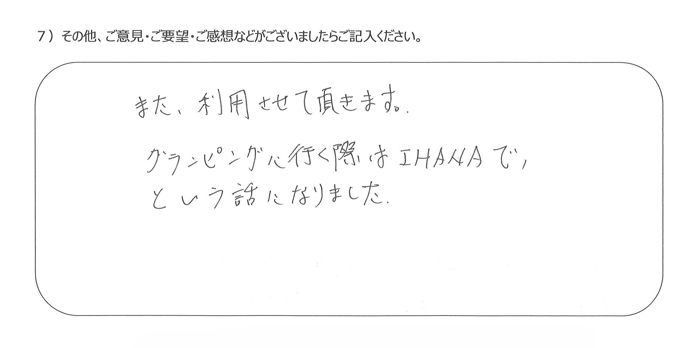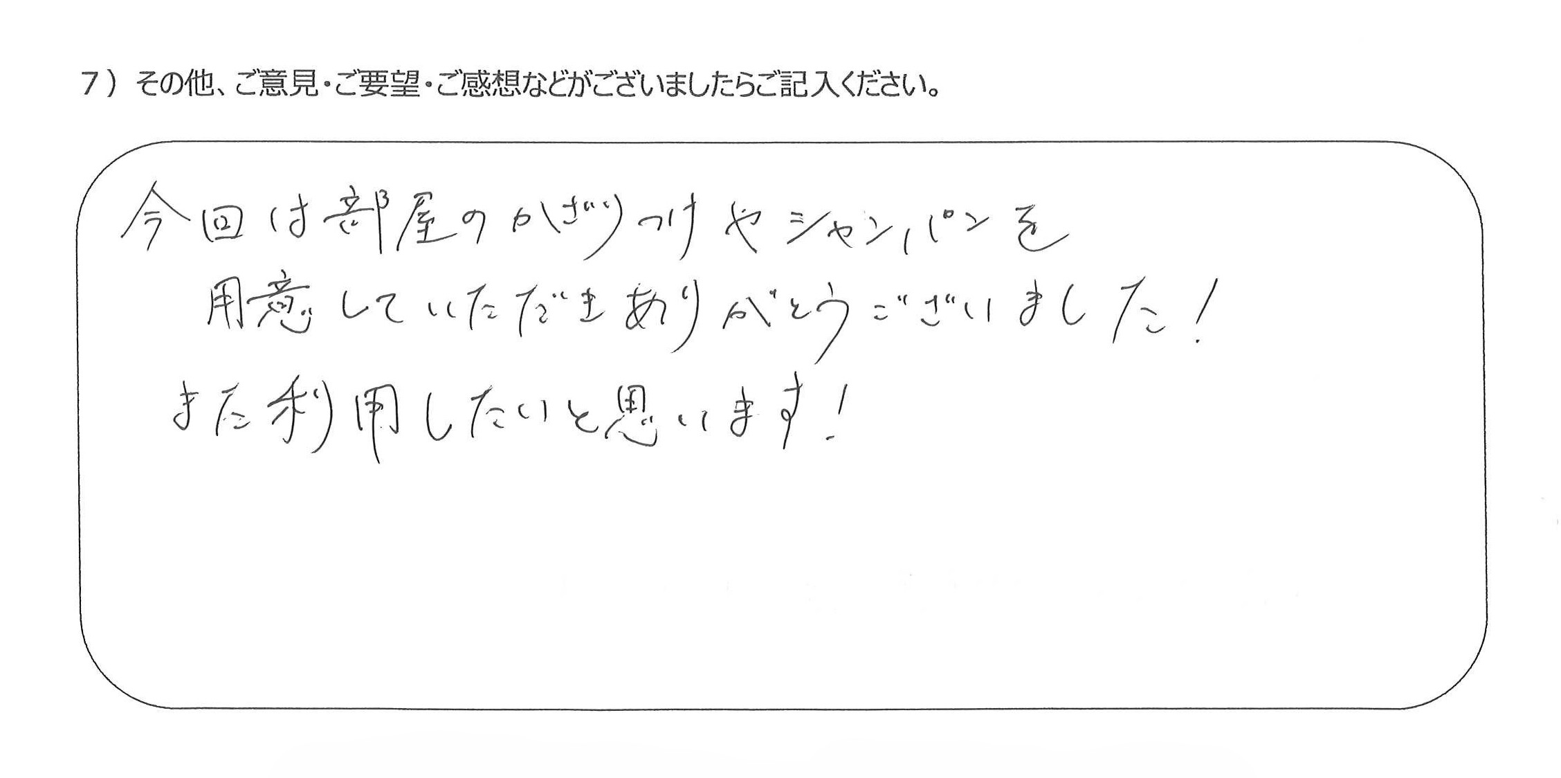 大変満足だった。また、誕生日のサプライズもありがたかった。7)また、利用させて頂きます。