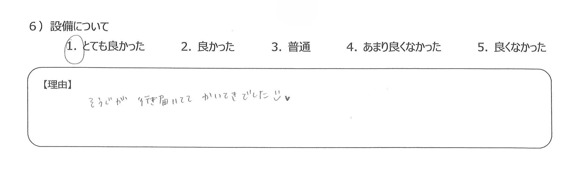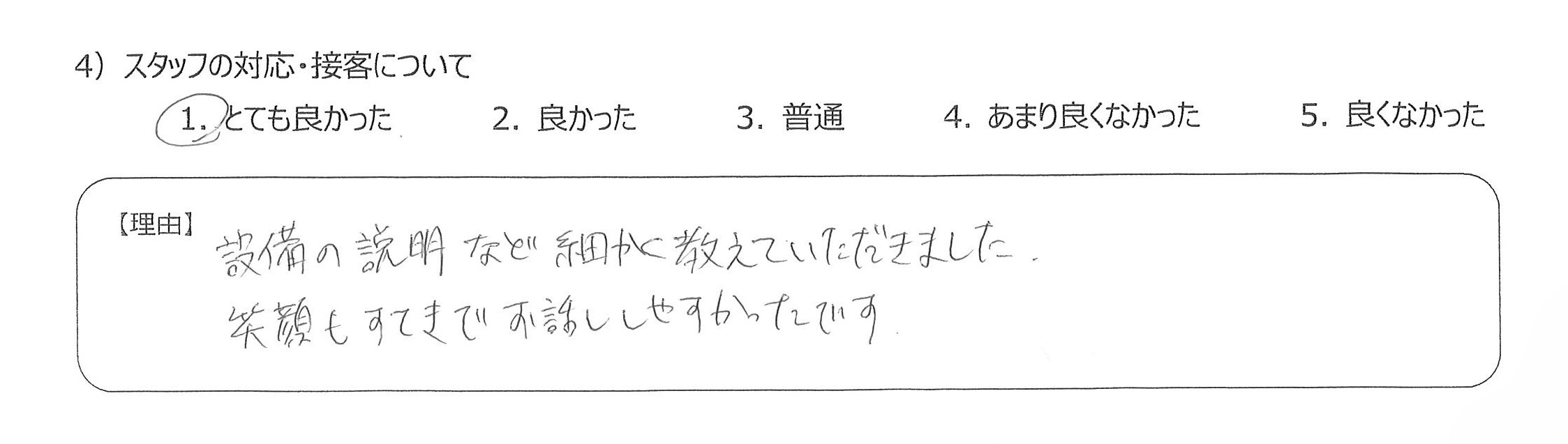 色々なものが、かゆいところに手がとどくような感じでした。4)設備の説明など細かく教えていただきました。
