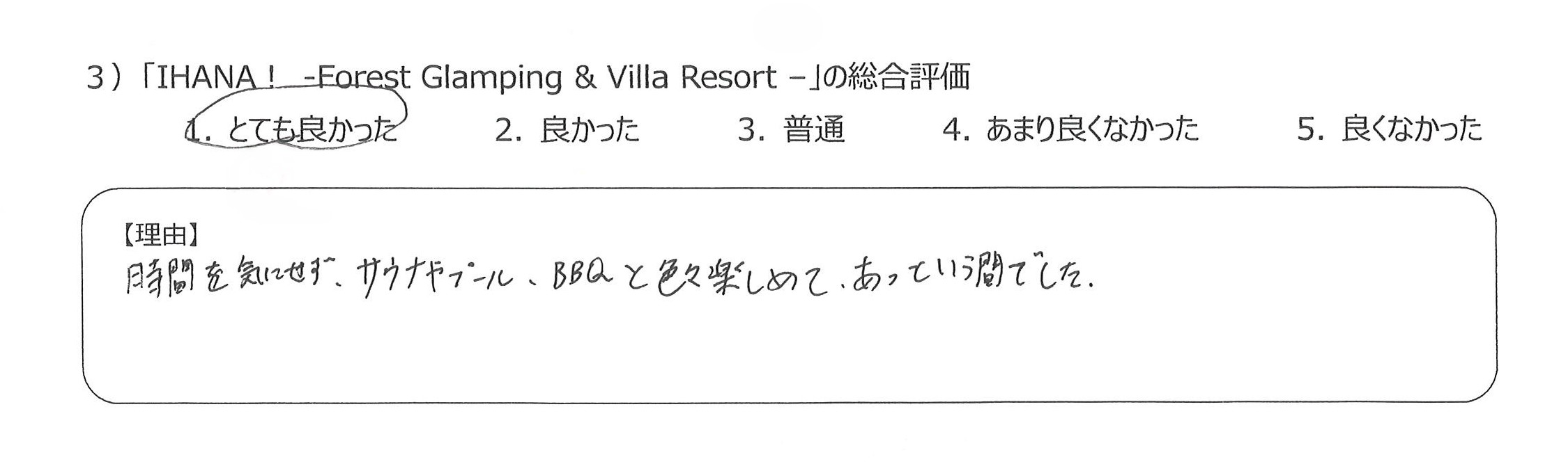 時間を気にせず、サウナやプール、BBQと色々楽しめて、あっという間でした。