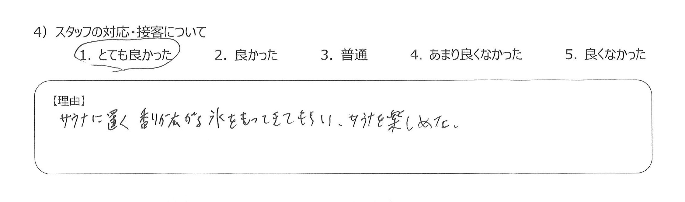 サウナに置く香りが広がる氷をもってきてもらい、サウナを楽しめた。