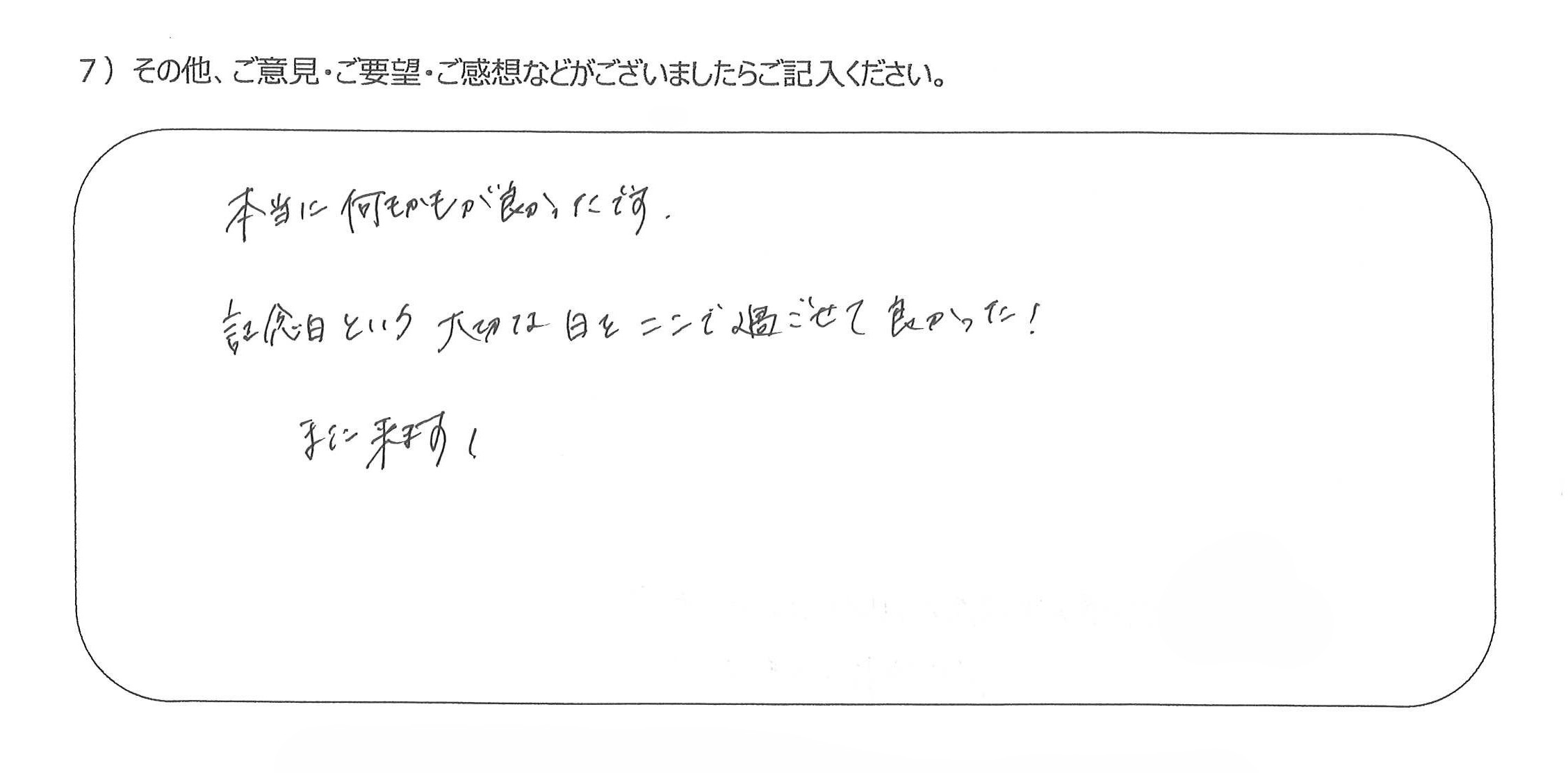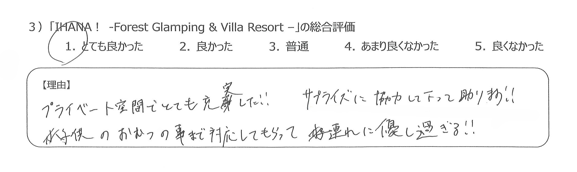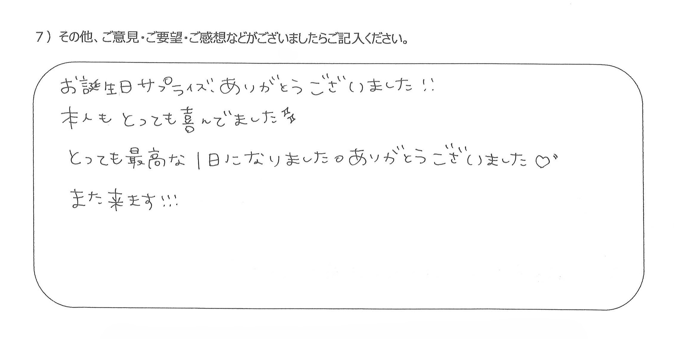 3)プライベート空間でとても充実した!!サプライズに協力して下さって助かります!!