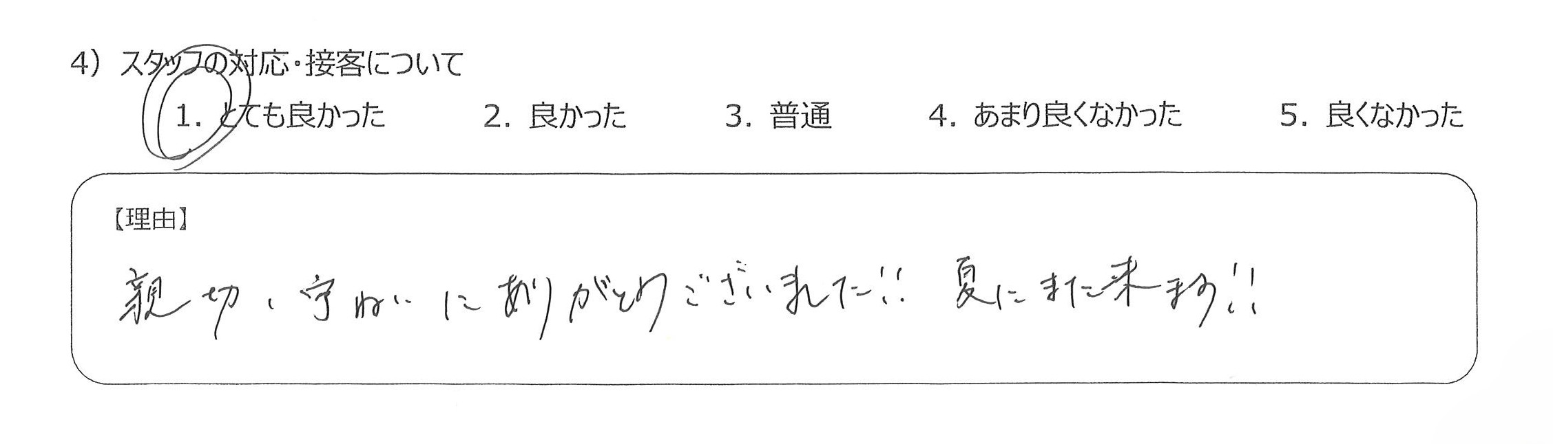 子供のおむつの事まで対応してもらって子連れに優し過ぎる!!4)親切、丁ねいにありがとうございました!!夏にまた来ます!!
