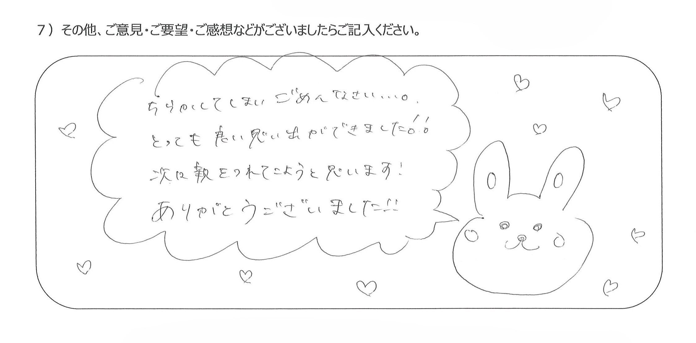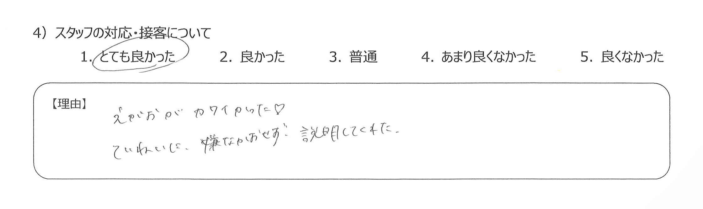 ていねいに、嫌なかおせず、説明してくれた。7)ちらかしてしまいごめんなさい…。