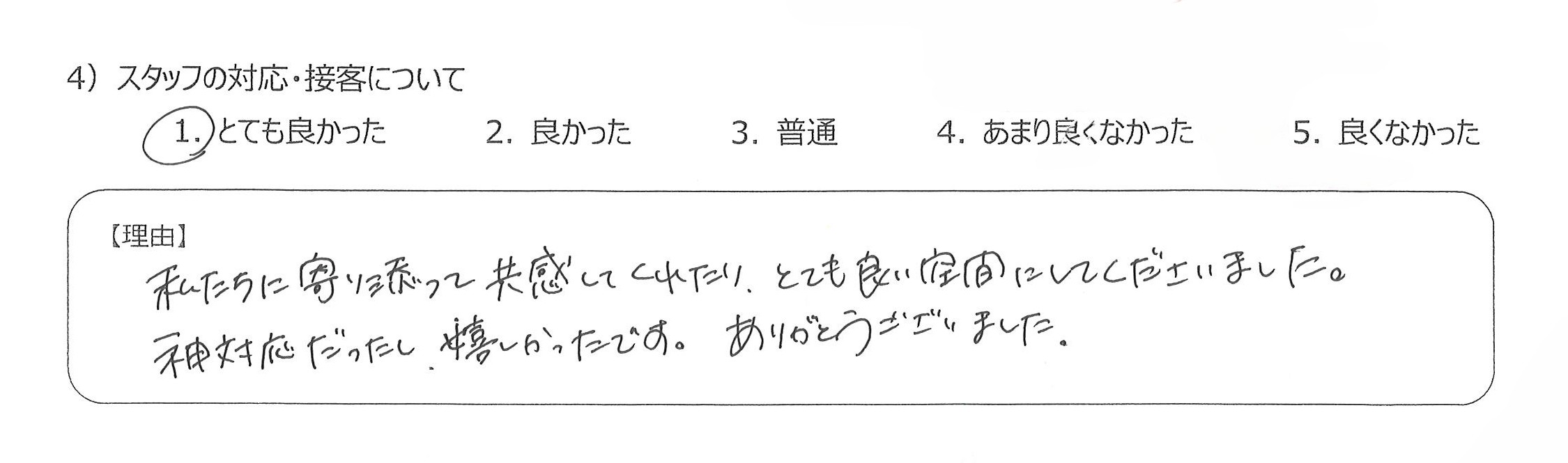私たちに寄り添って共感してくれたり、とても良い空間にしてくださいました。