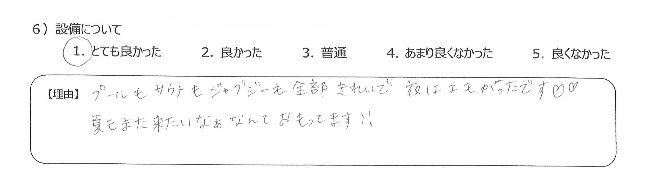 何回でも来たいと思いました!6)ジャグジー、サウナ、プール全てを体験できるのはここだけってのが良かったです。