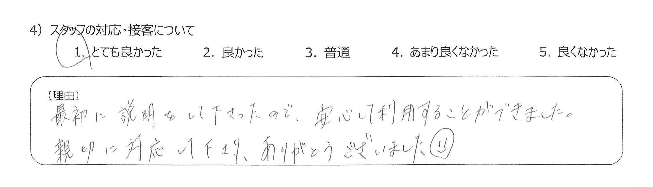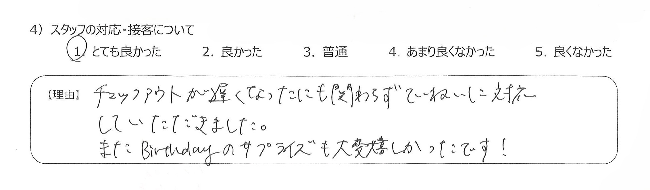4)チェックアウトが遅くなったにも関わらずていねいに対応