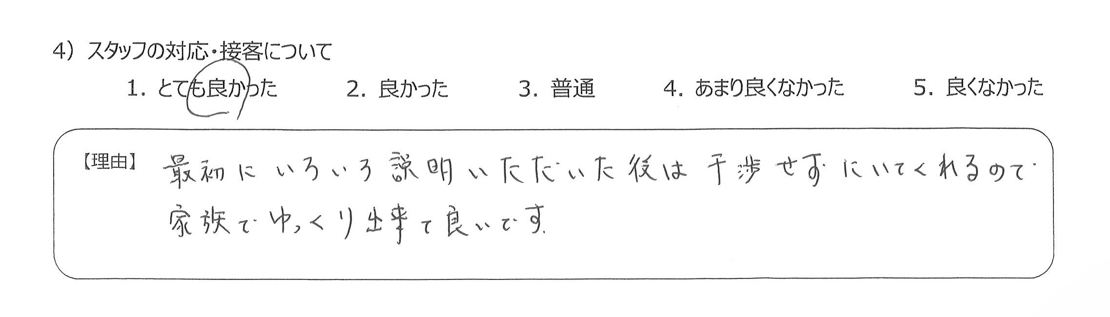 良かったです。4)最初にいろいろ説明いただいた後は干渉せずにいてくれるので