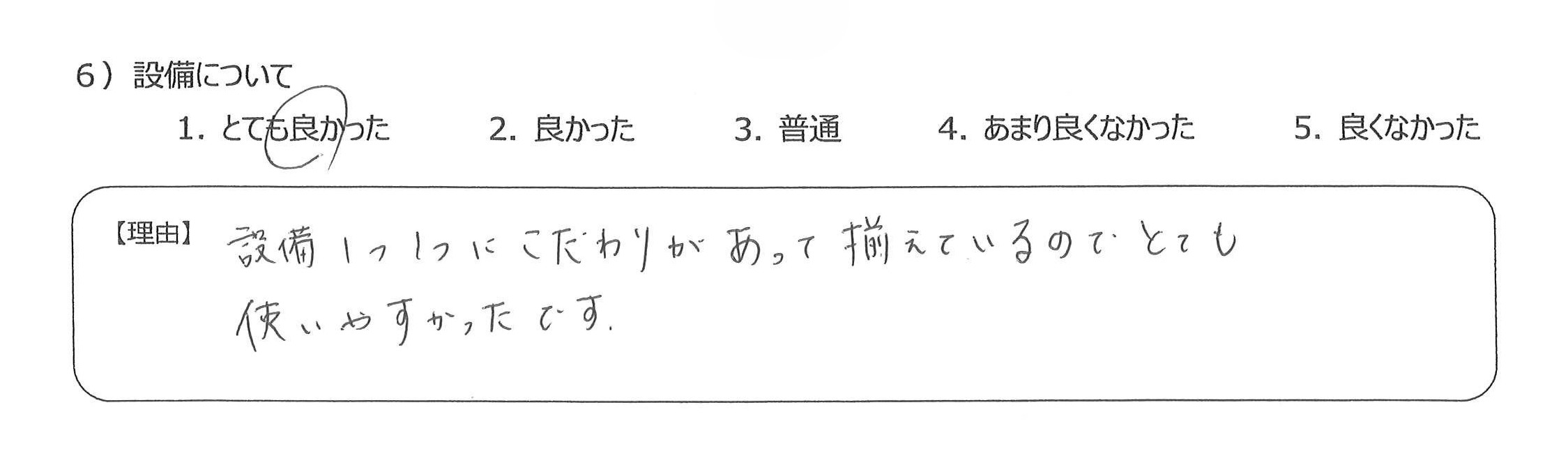 でおいしかったです。6)設備1つ1つにこだわりがあって揃えているのでとても