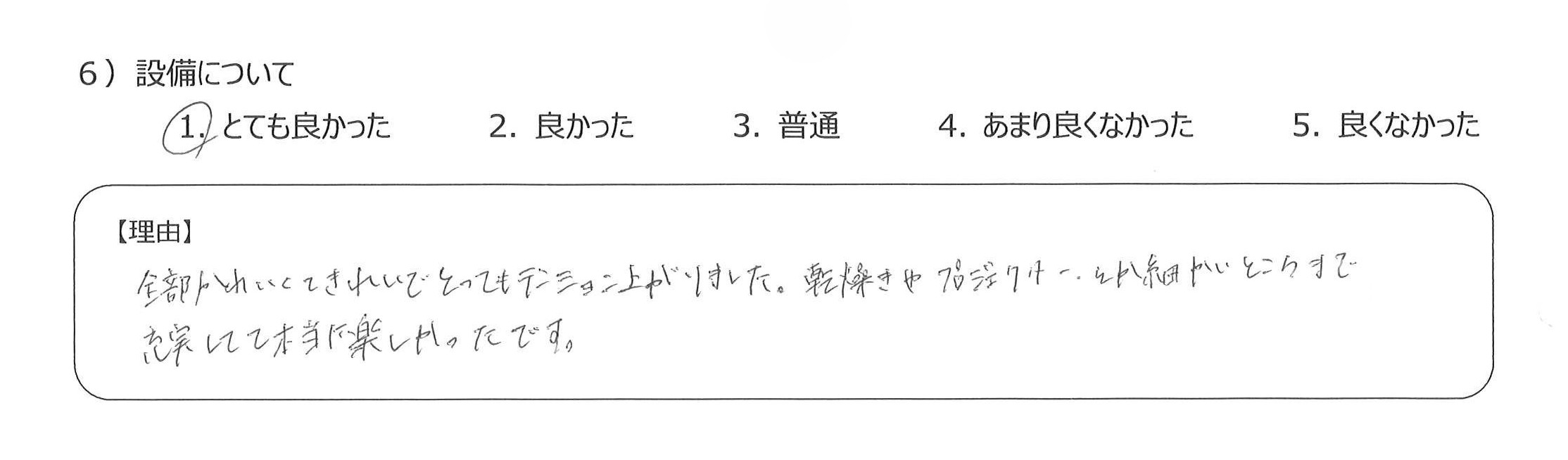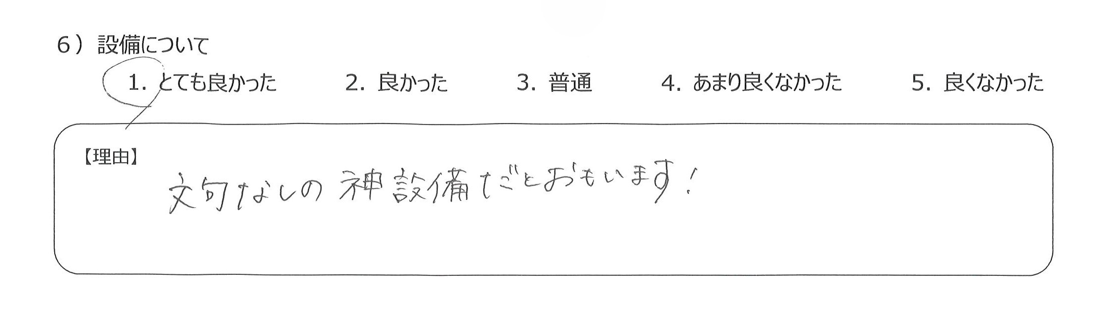 ありがとうございました(^^)6)文句なしの神設備だとおもいます!