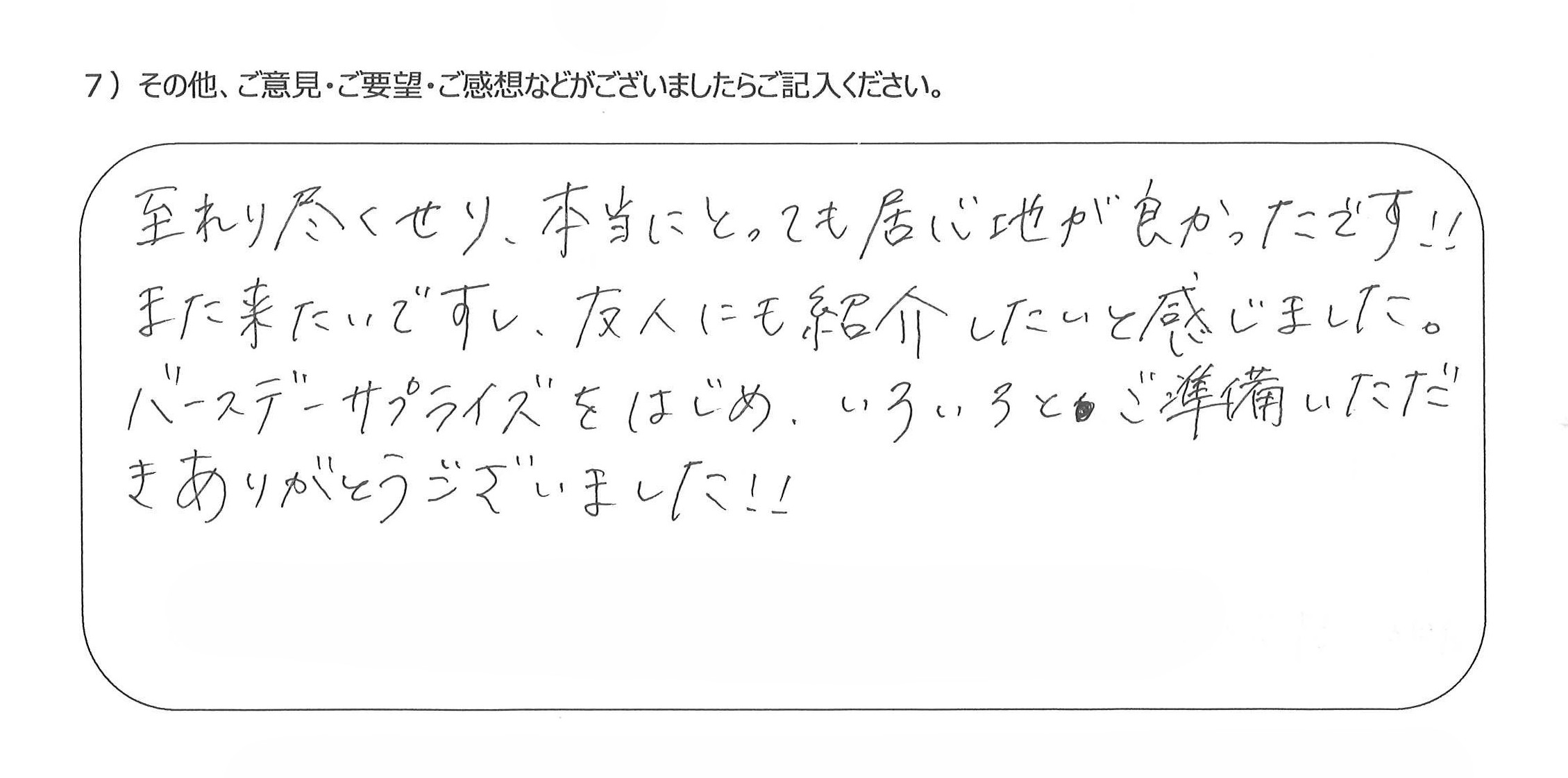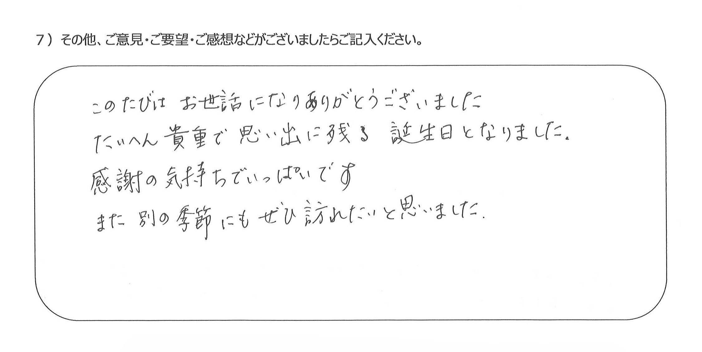 次は夏に来たいです♪4)誕生日のサプライズ、お手伝い頂き本当にありがとうございました(^^)