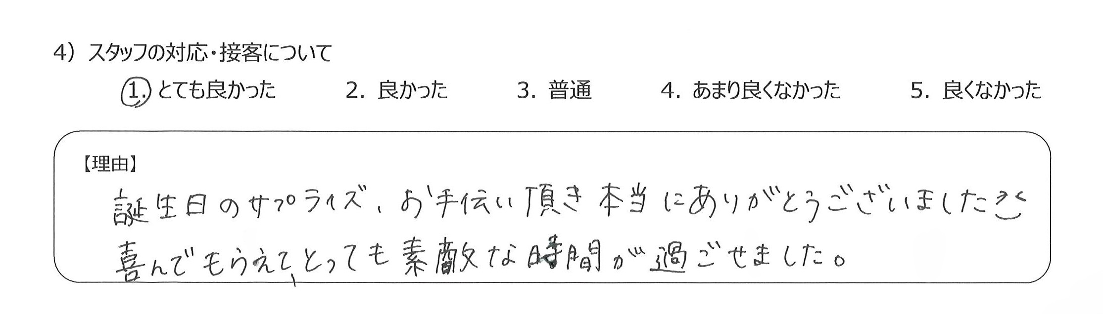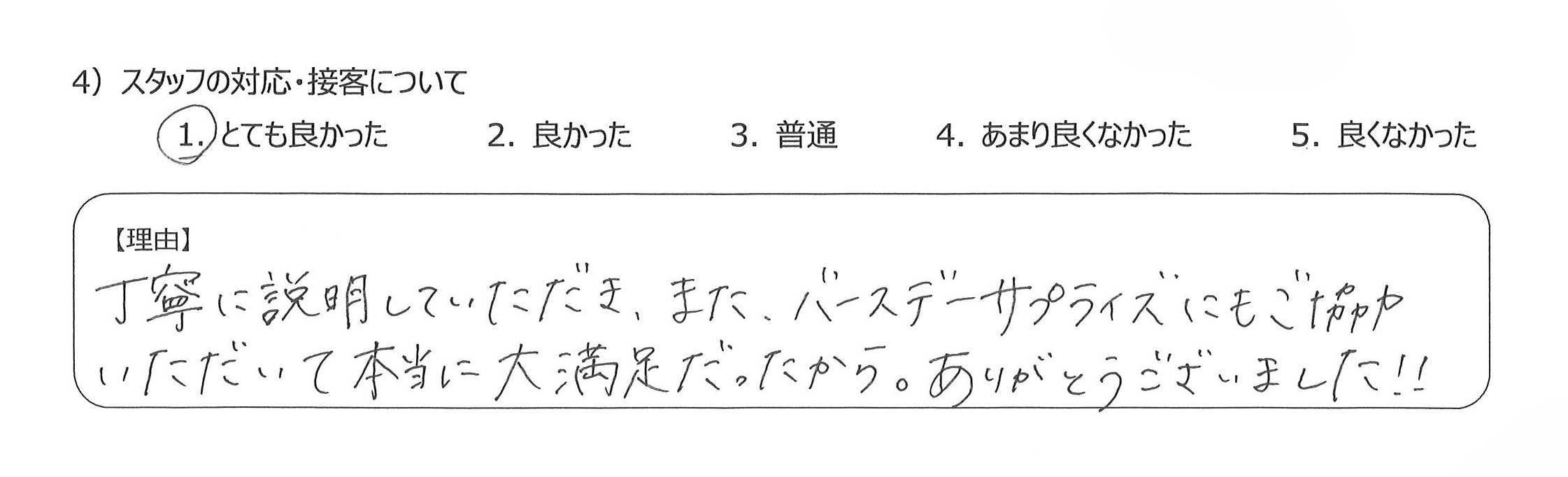 4)丁寧に説明していただき、また、バースデーサプライズにもご協力