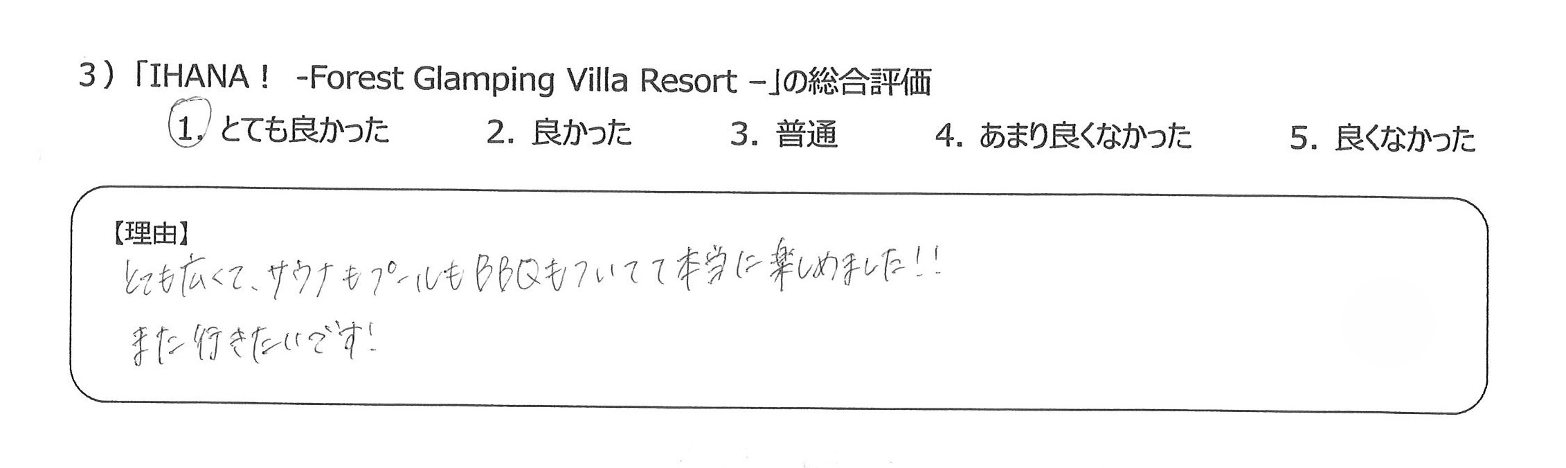 3)とても広くて、サウナもプールもBBQもついてて本当に楽しめました!!
