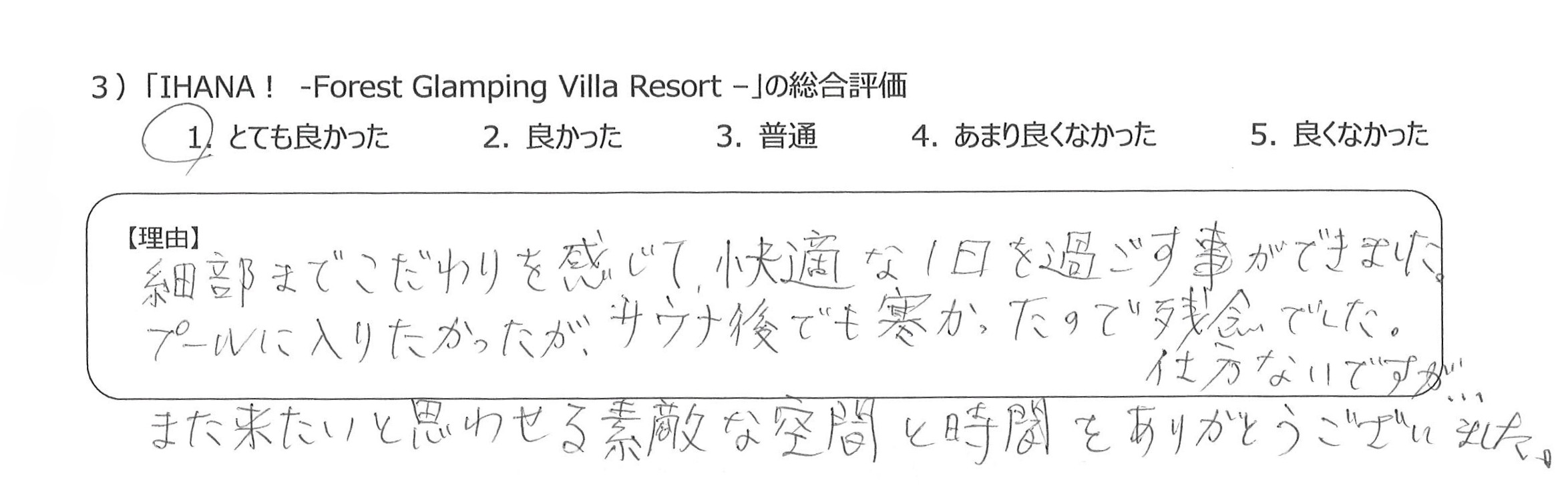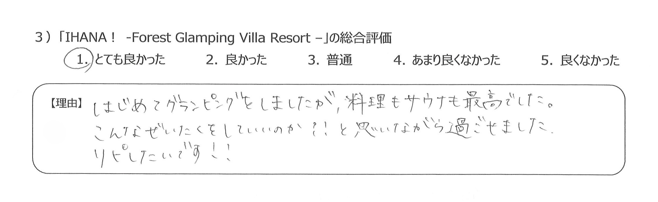 3)はじめてグランピングをしましたが、料理もサウナも最高でした。