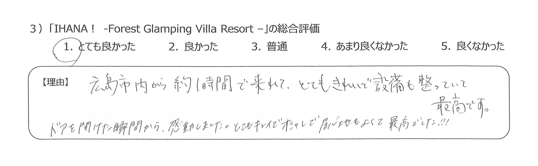 3)広島市内から約1時間で来れて、とてもきれいで設備も整っていて最高です。
