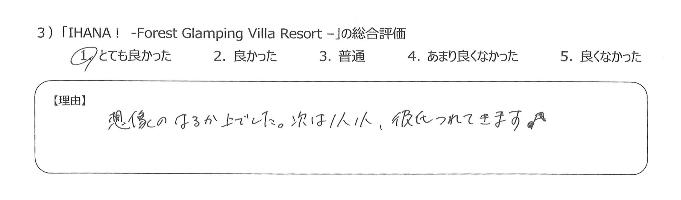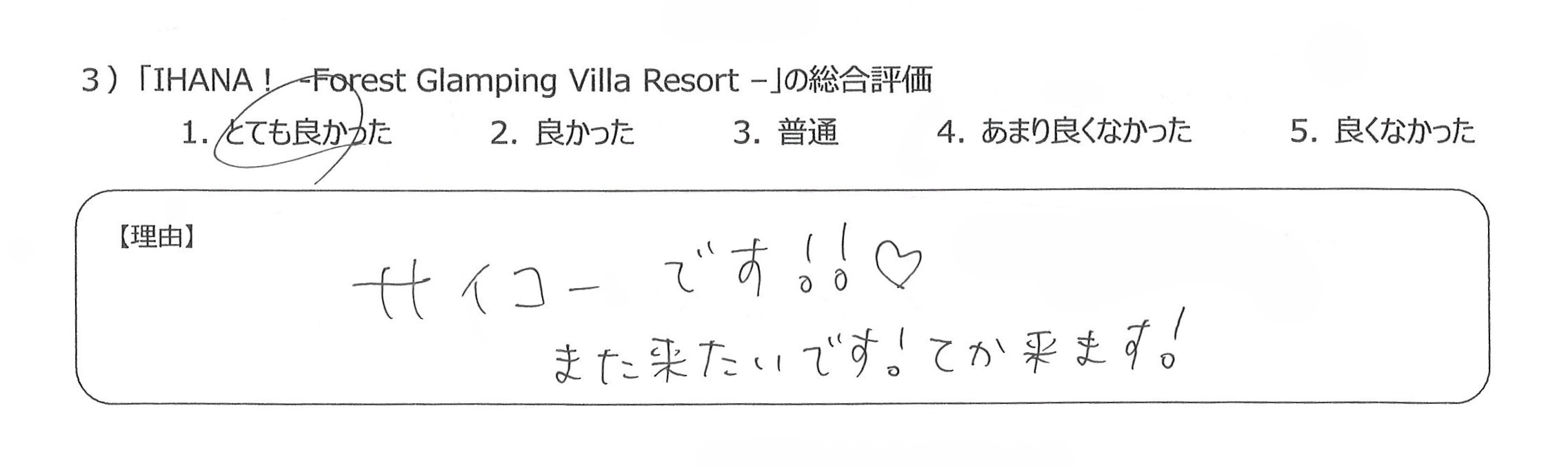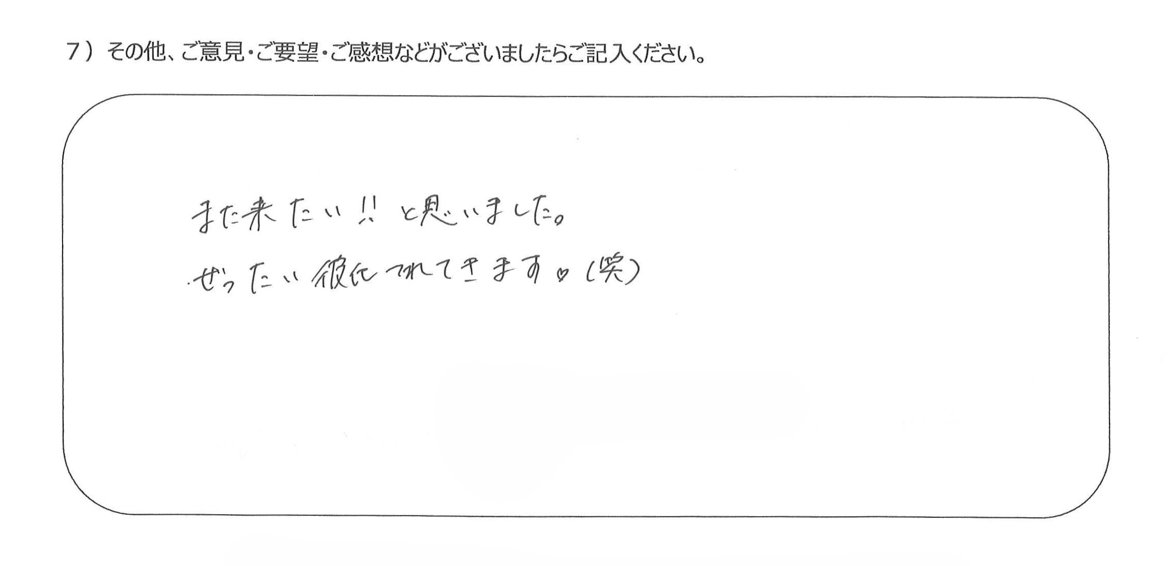 3)想像のはるか上でした。次は1人1人、彼氏つれてきます♪ 7)また来たい!!と思いました。