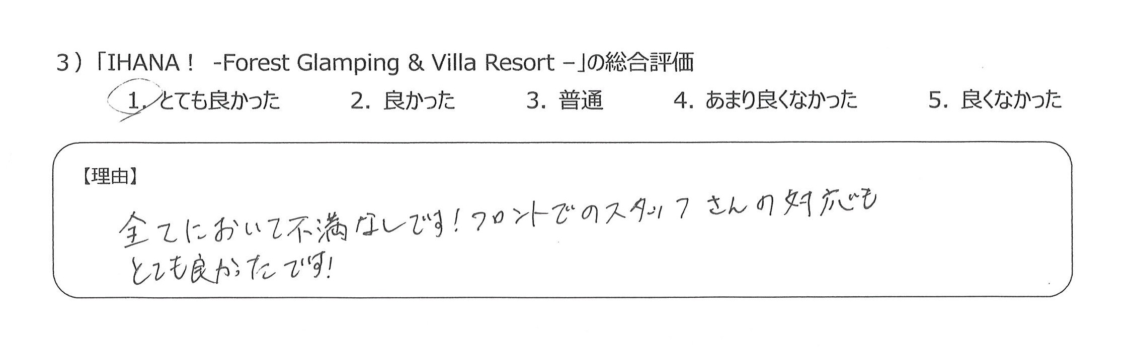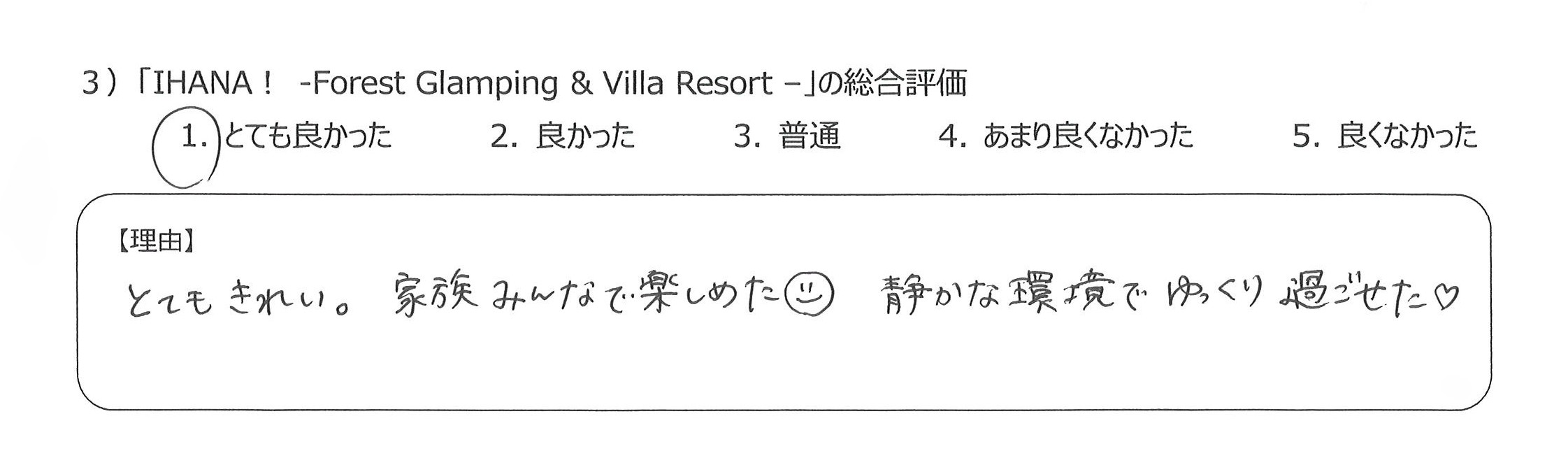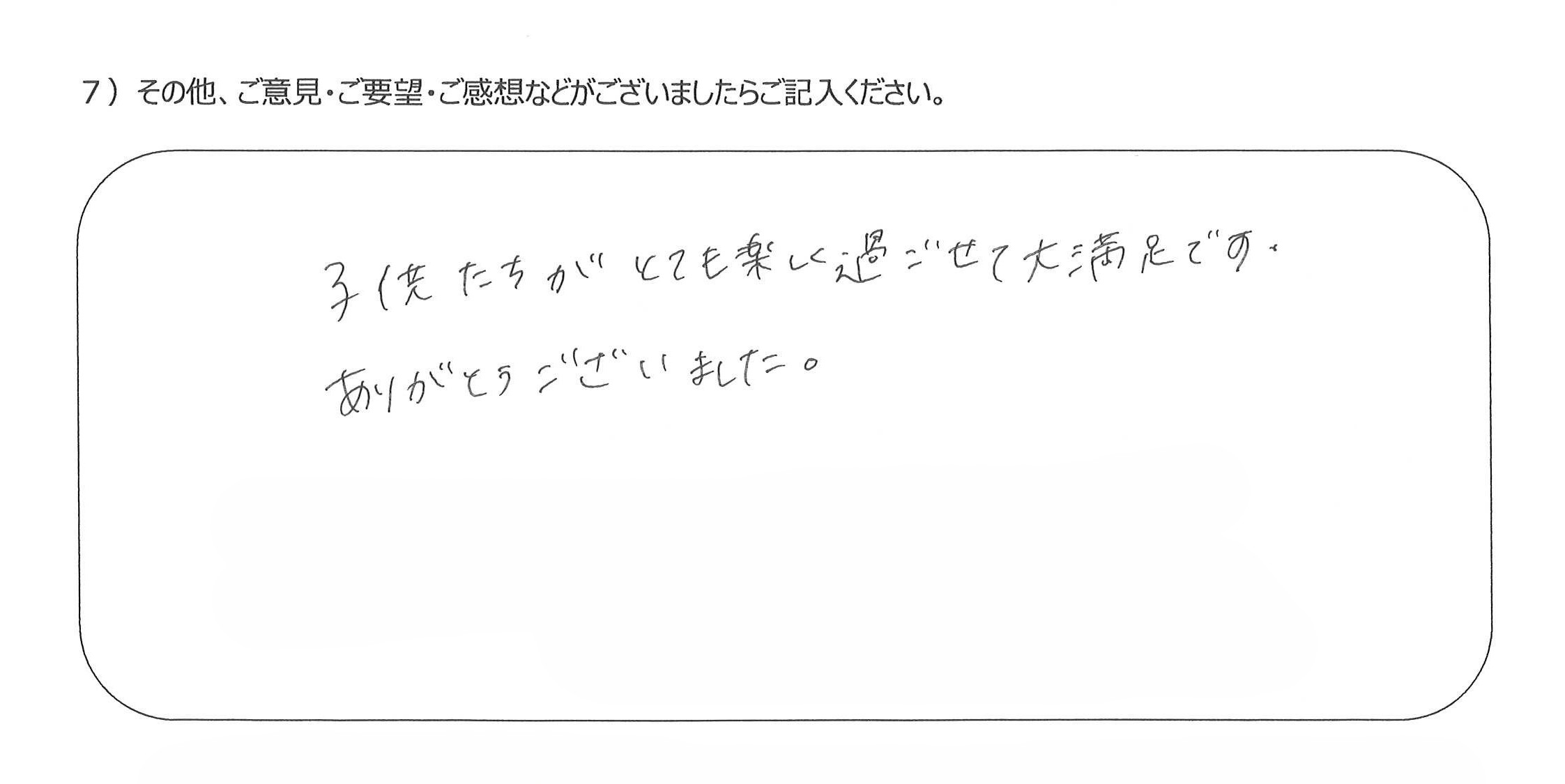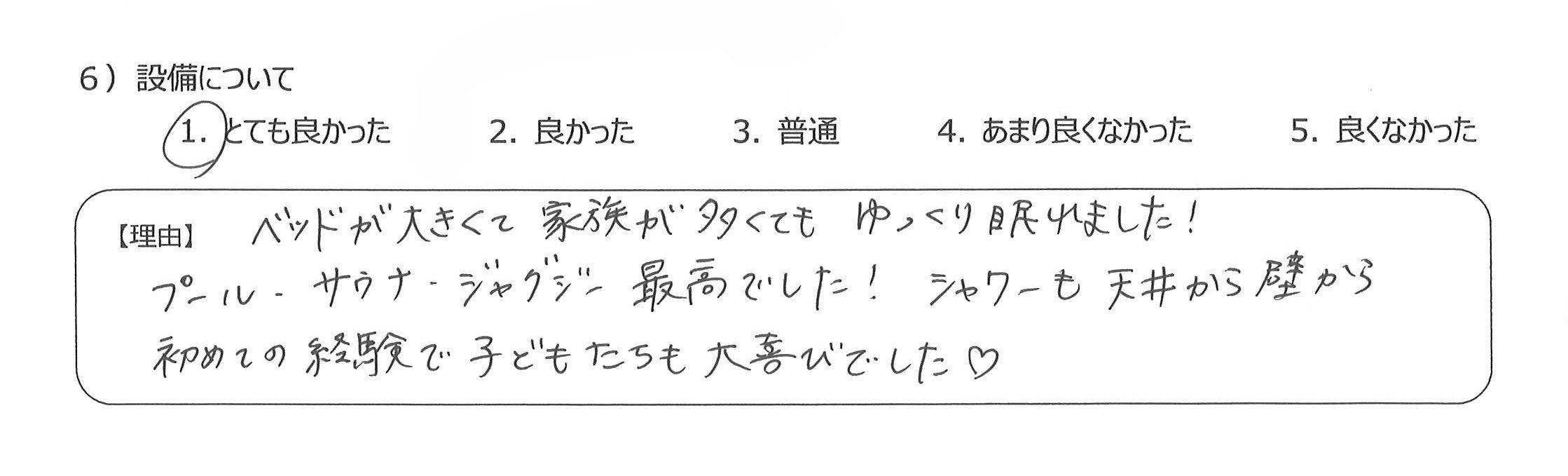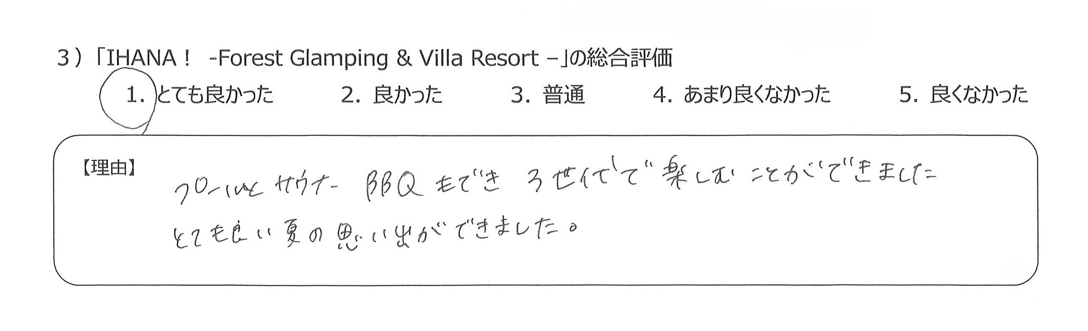 とても良い夏の思い出ができました。4)親切に対応して下さりありがとうございました