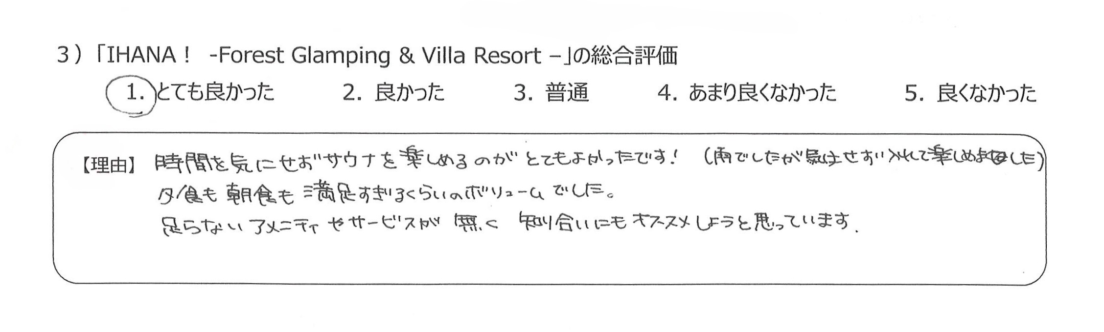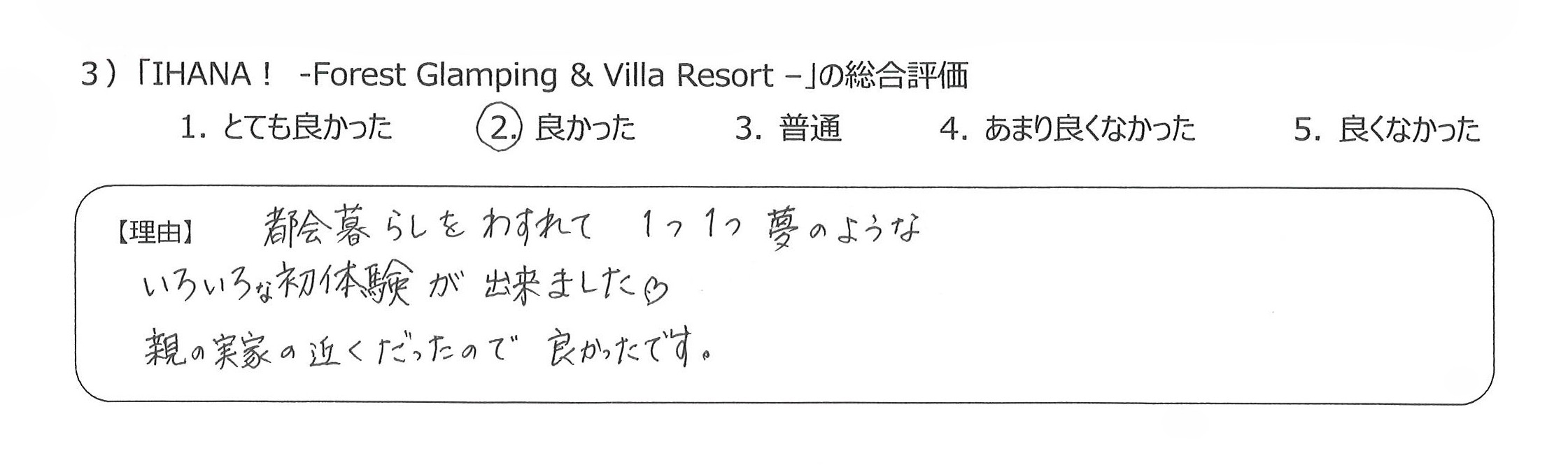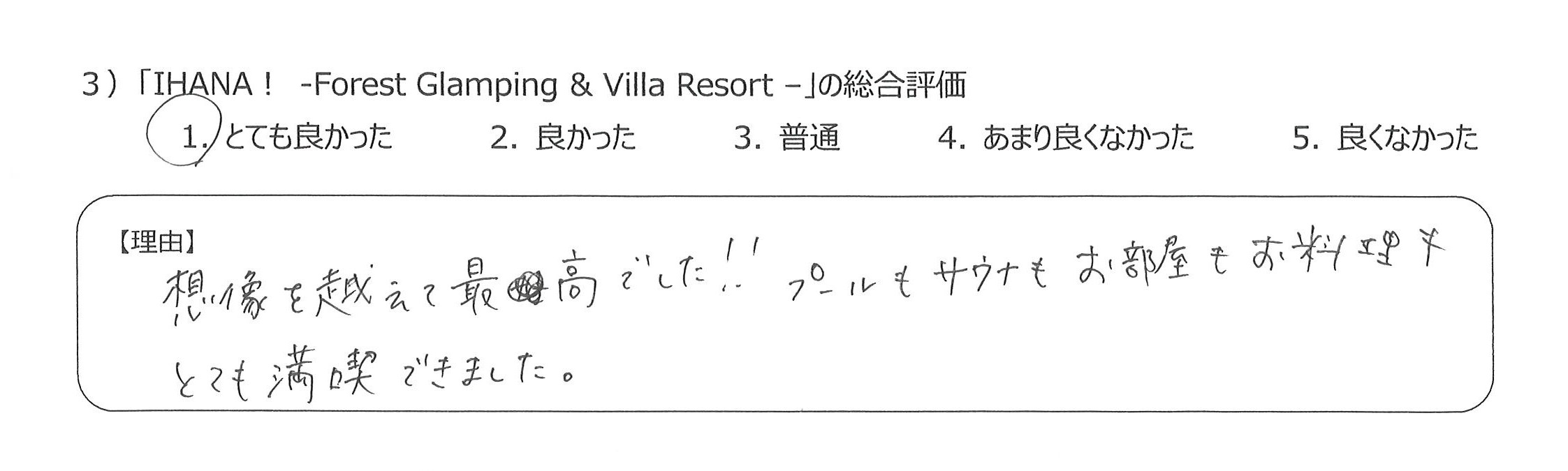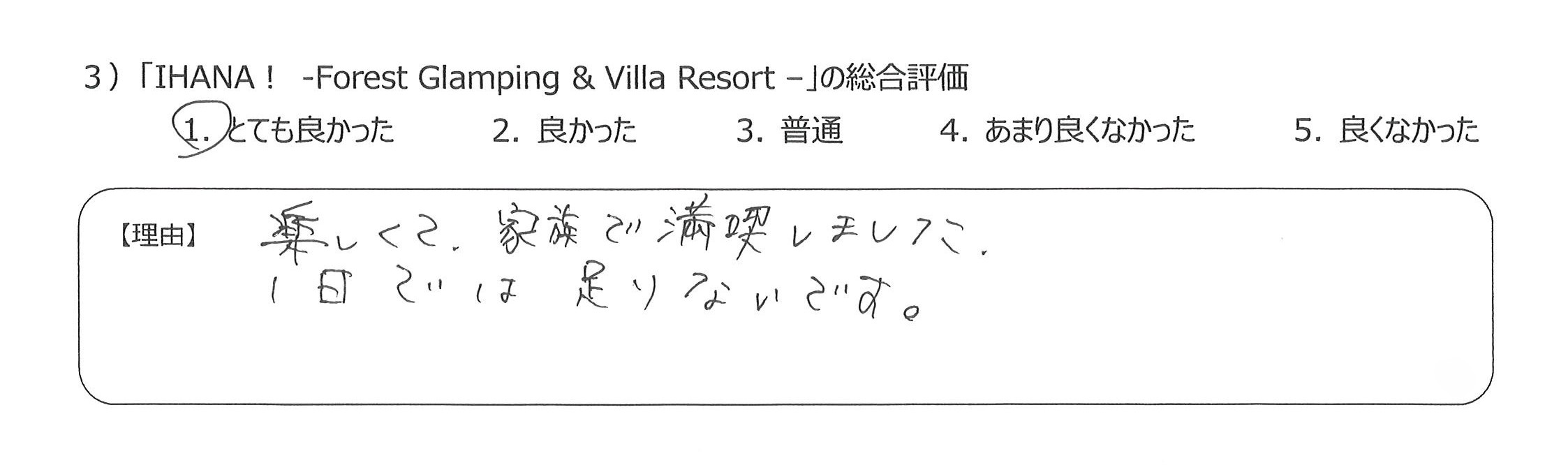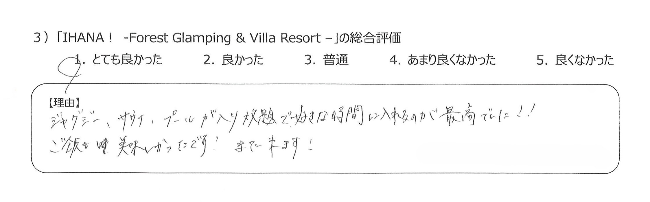 とても良い夏の思い出ができました。4)親切に対応して下さりありがとうございました