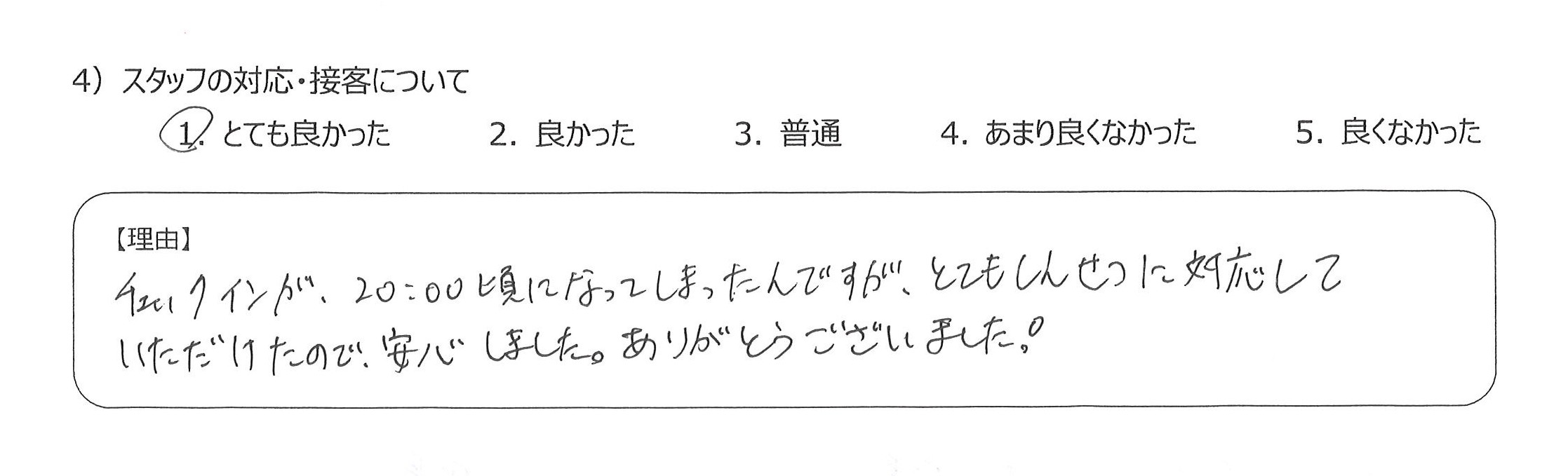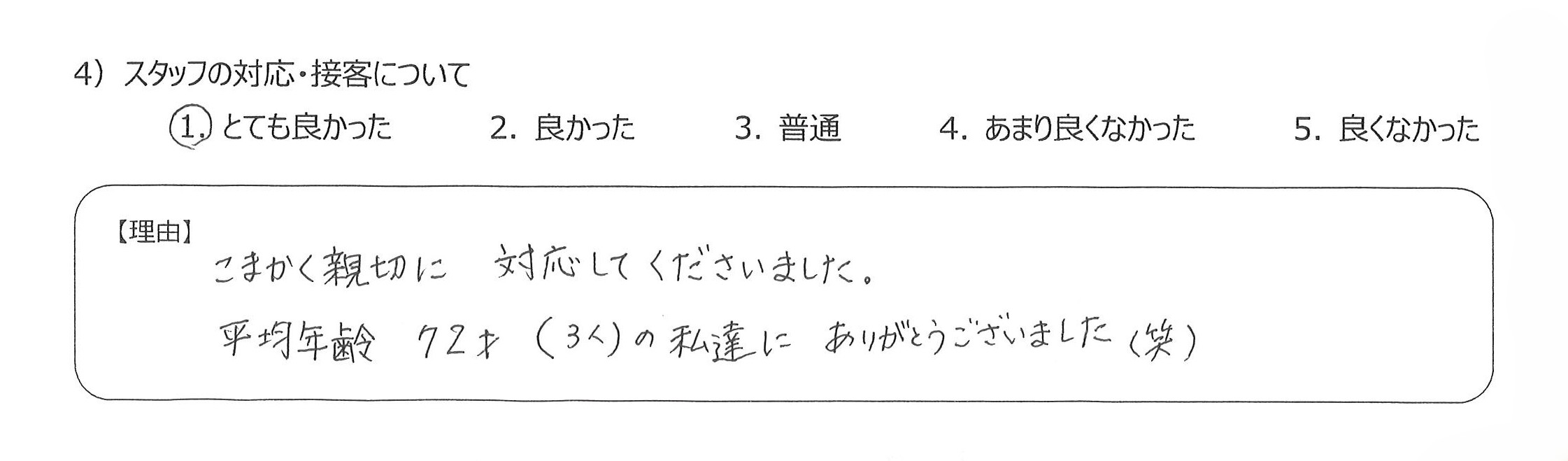 親の実家の近くだったので良かったです。”4)こまかく親切に対応してくださいました。