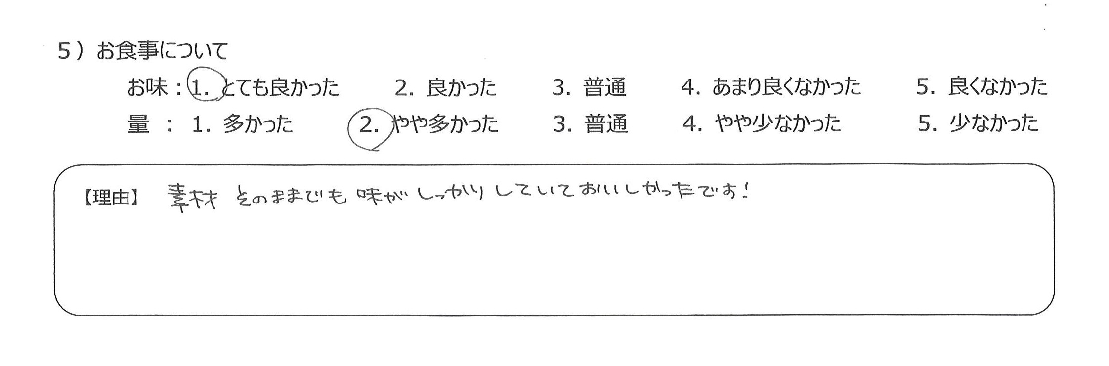 分かって安心してすごせました。5)素材そのままでも味がしっかりしていておいしかったです!