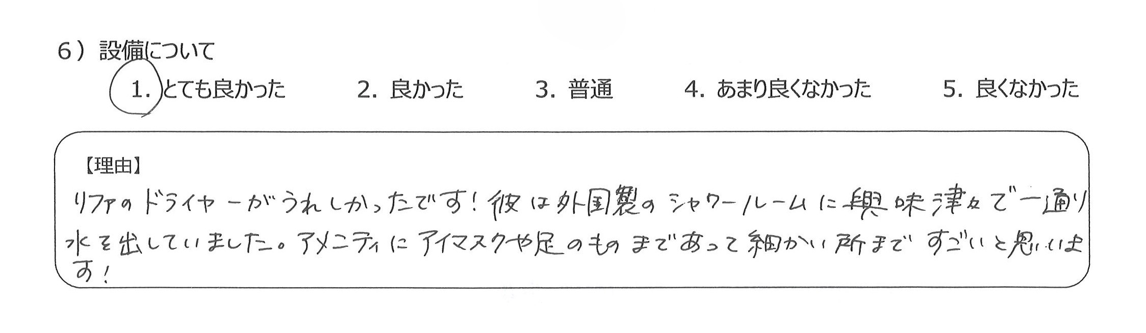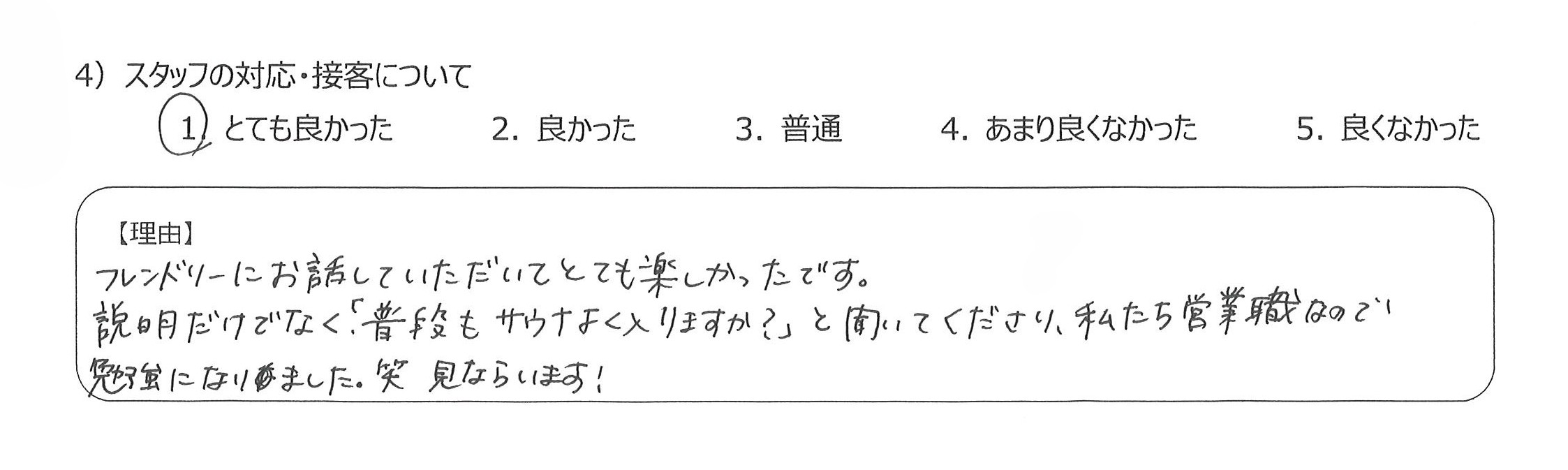 いました。4)フレンドリーにお話していただいてとても楽しかったです。